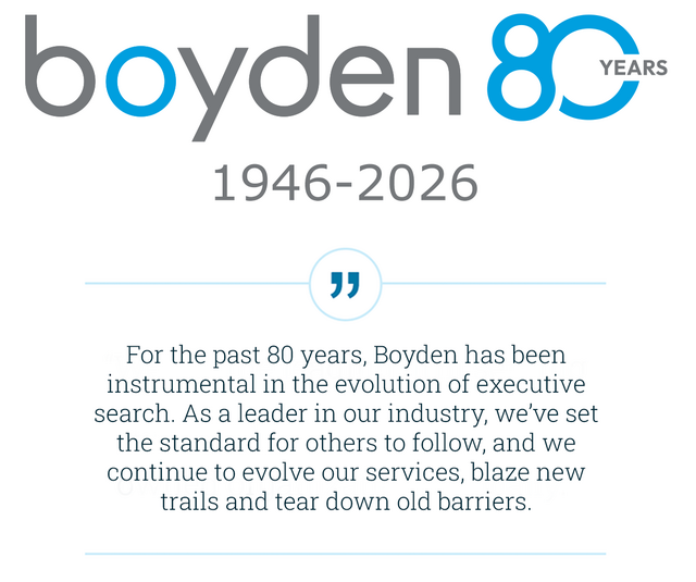 For 80 years, Boyden has guided organizations through moments of opportunity, change and reinvention. Our partners bring industry depth and advisory insight across executive search, interim management and leadership consulting, helping clients navigate evolving markets, complex stakeholder environments and shifting expectations of modern leadership.