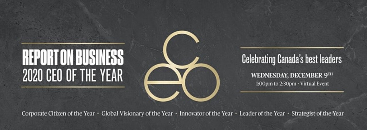 On December 9, 2020, join The Globe and Mail for the 2020 Report on Business magazine CEO of the Year virtual event. Featuring in-depth interviews between Globe journalists and the five most outstanding Canadian business leaders of 2020, this event is a unique chance to celebrate the chief executives who have driven noteworthy business success across the nation in a year like no other.