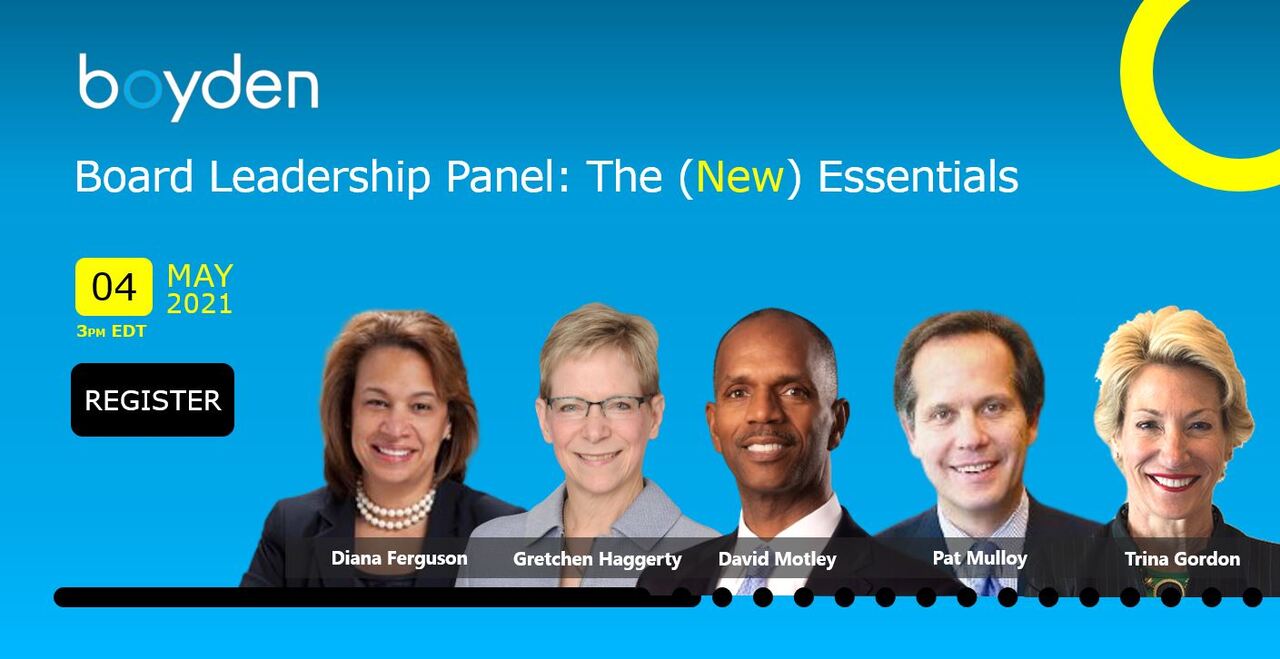 On May 4, Boyden is addressing these impacts with governance experts across the industry spectrum. Moderated by Trina Gordon, President & CEO, Boyden World Corporation, the conversation will cover evolving strategies and approaches including: