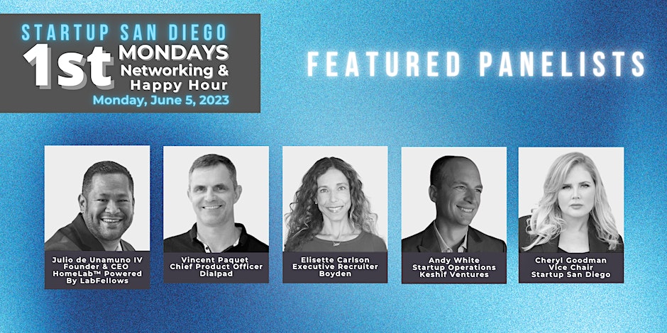 Startup San Diego will be having an incredible night full of connections as well as an expert panel to talk about all AI, tech, and startups. Meet some of the best San Diego founders, entrepreneurs, investors, and community members during the in-person June 1st Mondays - Networking & Happy Hour event! Happening Monday, June 5th at HomeLab Torrey Pines.