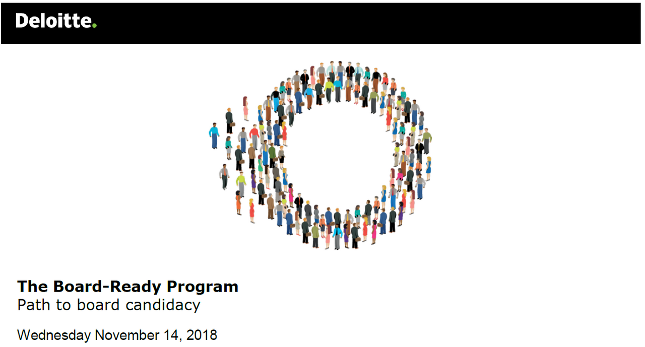 Deloitte's Vision Board-Ready Program, Path to Board Candidacy, will feature expert speakers, including Boyden CEO and Board Services Partner, Karen Kosiba Edwards, and Robert Herz, Director, Fannie Mae, Morgan Stanley, Paxos, Workiva, and the SASB Foundation. Deloitte Partner, Lissa Perez, will act as Moderator.