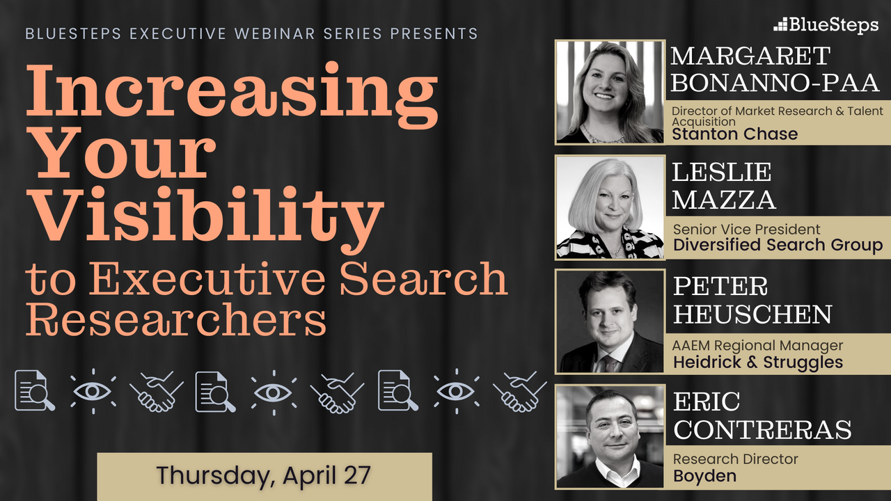 Being on the radar of an executive-level recruiters has the power to take your career to the next level. But understanding how to get noticed by researchers and make connections can feel confusing. Join us as we take a look at how to increase your visibility and create mutually beneficial contacts in the search community.