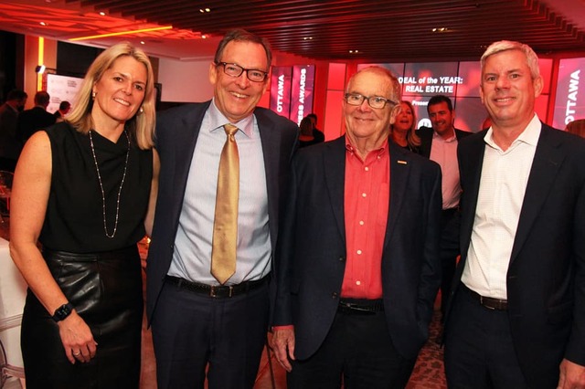 Jim Taggart, recipient of Lifetime Achievement Award, is joined by his younger daughter ​​​​​​Julie Taggart, co-president of Taggart Realty Management, his youngest brother Chris Taggart, co-president of Tamarack and Tartan Homes, and, on the far right, his son Mike Taggart, president of Taggart Construction and Doran Contractors, at the Best Ottawa Business Awards. Photo by Caroline Phillips