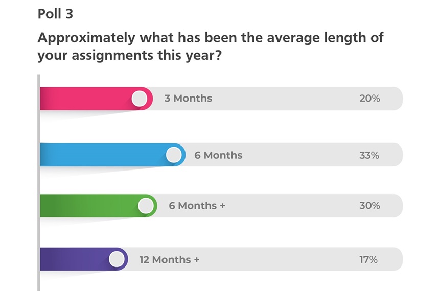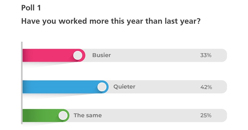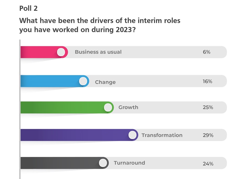 For our first poll question, we asked interim managers about their activity levels this year compared to last year. We found that 58% of interims were busier or had the same activity levels compared with the previous year, which is encouraging.