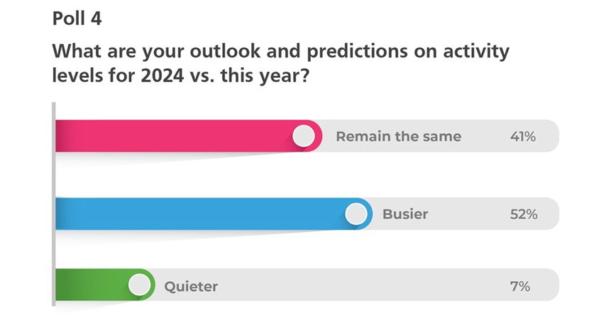 We finally asked interim managers to look into their crystal ball and make some predictions for activity levels in 2024. Against a backdrop of sluggish growth, stubborn inflation, and a looming election, the majority of interims believed that the market would be busier in 2024, with 52% predicting an increase in activity levels, while 41% thought that activity levels would remain the same.