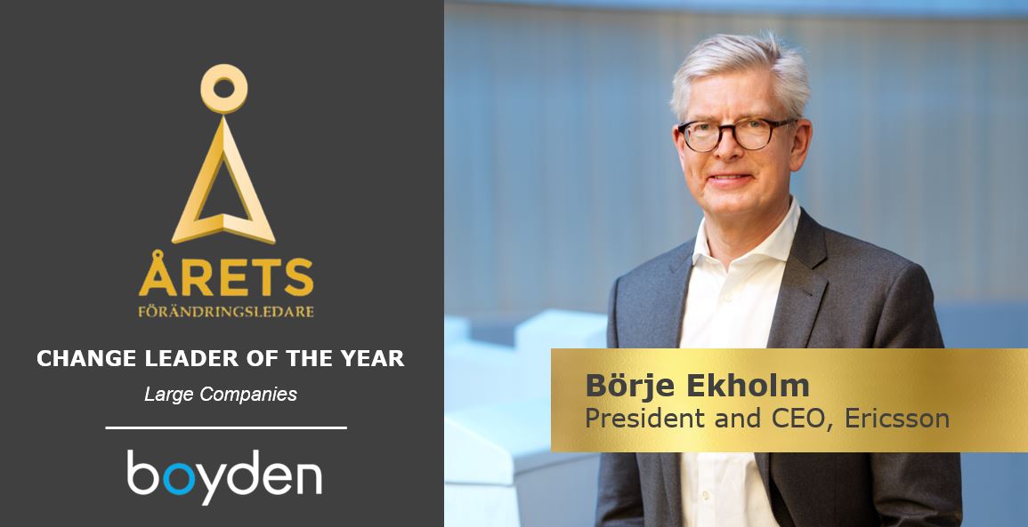 Successful change management is among the most demanding in the business world. Boyden Executive Search and Interim Search, presenters of the awards, are especially honored to celebrate transformational leaders who drive their organizations forward with ambition and vision – precisely in challenging and disruptive times. Katarina Brixéus and Elise Andström, Managing Partners, Boyden Sweden, and members of the jury, comment, "Recognizing inventive and inspiring leadership is our privilege as we congratulate Börje Ekholm. Reflecting on the past year, Börje is an inspiring example of foresight, courage, and determination to see his organization succeed in a most unprecedented time. Congratulations to Börje and Ericsson on this recognition."