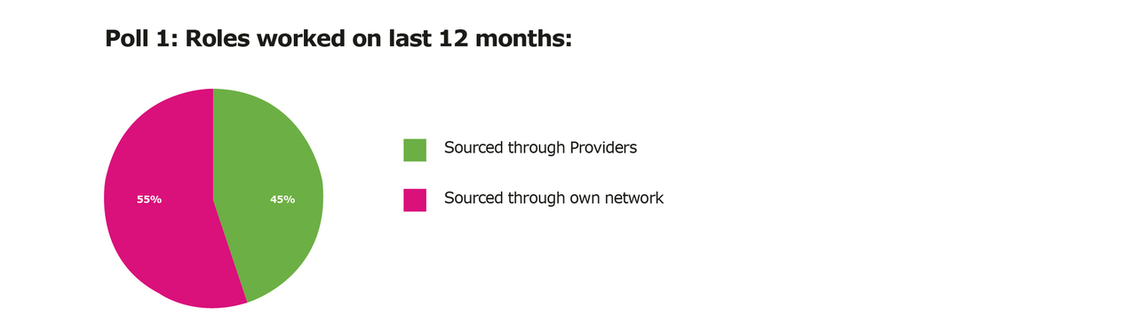 According to the first poll response, a significant number of people are securing roles through their own networks or directly from clients and referrals. This came as no surprise, as there has always been a split in the industry regarding how roles are sourced. Many companies have used in-house teams, Linkedin, and their connections to find interims. Working with interim providers, on the other hand, allows you to tap into a much larger network of known, tried and tested individuals and thus provide a broader range of options to ensure the market is thoroughly covered.