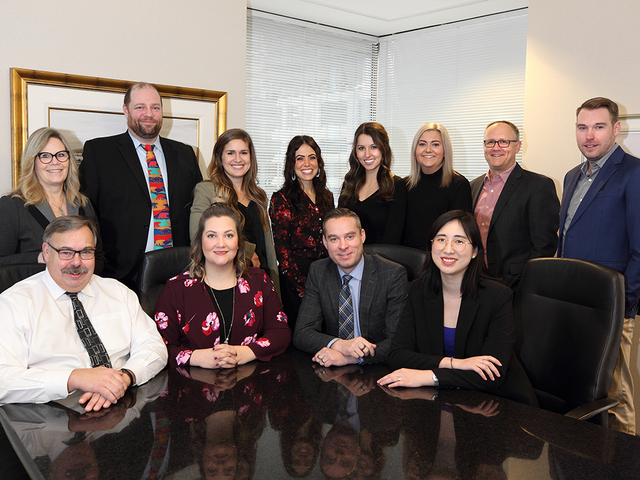 Some of the team at Boyden’s Calgary office, including, front row, from left, Kevin Gregor, Jodie Scott, Morgan Campbell and Fay Quon. Back row, from left, Jackie Gruber, Nathan Berko, Nicole King, Mikyla Hall, Meghan Kotowich, Jelena Marjanovic, Robert Travis and Kenny Gregor.