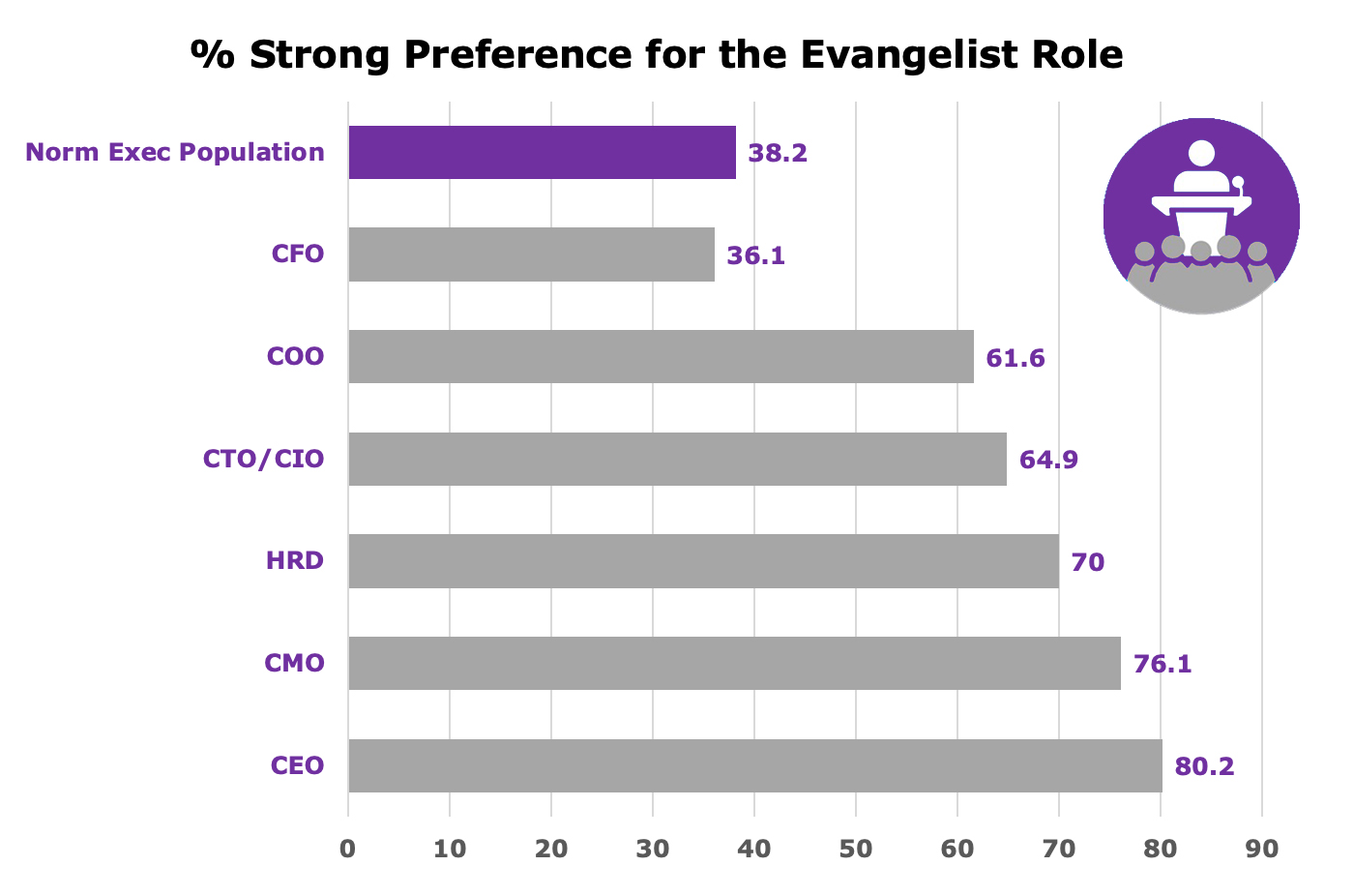 CEOs and C-suite colleagues indicating a strong preference for the evangelist role (%)