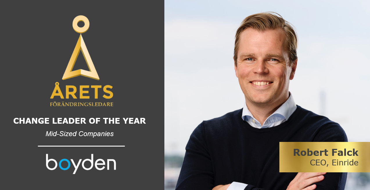 Årets Förändringsledare recognizes Einride CEO, Robert Falck, in the Mid-Sized Company category, presented in partnership by Boyden Global Executive Search and Interim Search.