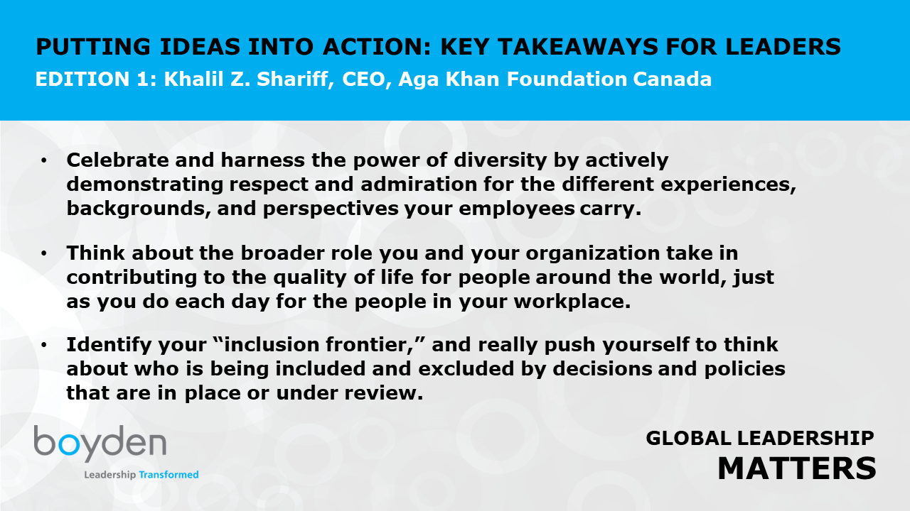 Khalil talked with Boyden’s Alain Pescador about the meaning of pluralism, Canada’s unique position in global affairs and the three reasons why pluralism is important in leadership.