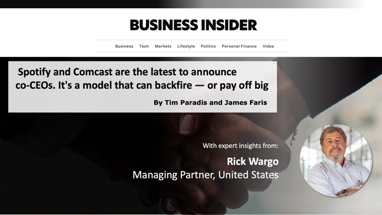 Rick Wargo, Managing Partner at Boyden, sees potential in the model, saying, “It is an arrow that more boards, I think, will keep in their quiver.” Research supports this view: companies with co-CEOs have historically outperformed their single-leader counterparts in shareholder returns.