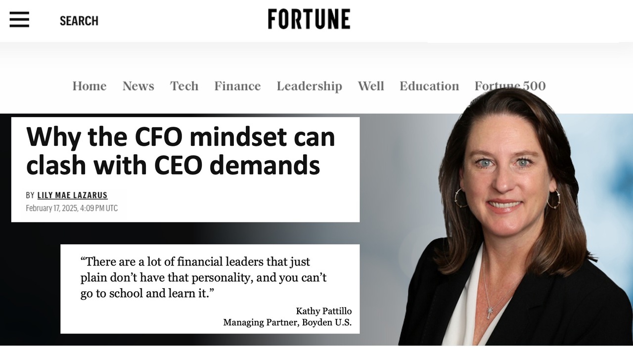 Boyden Managing Partner Kathy Pattillo highlights the critical role of soft skills in this shift, emphasizing, “There are a lot of financial leaders that just plain don’t have that personality, and you can’t go to school and learn it.”